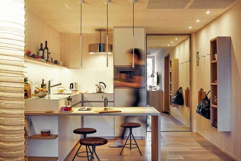 Nachhaltige und lokale Materialien treffen auf die neueste Technologie. Umgeben von duftendem Holz und ausgestattet mit einer Kitchenette sind unsere Zimmer ein echtes Zuhause.